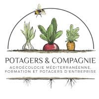 Potagers & Compagnie, entreprise de l'économie sociale et solidaire engagée pour la transition agroécologique. Sur notre site, nous avons développé un verger-maraîcher et un petit élevage de poules pondeuses en nous inspirant de l'agroécologie et du maraîchage sur sol vivant. Notre ferme maraîchère bio est également un lieu d'expérimentations et d'essais agronomiques, en lien avec nos partenaires scientifiques et techniques comme Montpellier Supagro ou le Groupement de recherche en agriculture biologique. Organisme de formation professionnelle certifié Qualiopi et ferme formatrice du réseau Fermes d'Avenir, nous formons aux techniques agroécologiques que nous mettons en oeuvre au quotidien sur notre ferme. Enfin, nous sommes un bureau d'études les pieds sur terre qui accompagne des projets de création de potagers d'entreprise (pour nourrir la communauté de travail) et de fermes maraîchères municipales (pour alimenter la cantine scolaire). Nous oeuvrons pour un modèle économique moins précaire et plus équitable avec des maraîchers salariés.