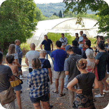 Potagers & Compagnie, entreprise de l'économie sociale et solidaire engagée pour la transition agroécologique. Sur notre site, nous avons développé un verger-maraîcher et un petit élevage de poules pondeuses en nous inspirant de l'agroécologie et du maraîchage sur sol vivant. Notre ferme maraîchère bio est également un lieu d'expérimentations et d'essais agronomiques, en lien avec nos partenaires scientifiques et techniques comme Montpellier Supagro ou le Groupement de recherche en agriculture biologique. Organisme de formation professionnelle certifié Qualiopi et ferme formatrice du réseau Fermes d'Avenir, nous formons aux techniques agroécologiques que nous mettons en oeuvre au quotidien sur notre ferme. Enfin, nous sommes un bureau d'études les pieds sur terre qui accompagne des projets de création de potagers d'entreprise (pour nourrir la communauté de travail) et de fermes maraîchères municipales (pour alimenter la cantine scolaire). Nous oeuvrons pour un modèle économique moins précaire et plus équitable avec des maraîchers salariés.